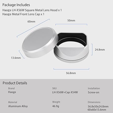 Sản phẩm Haoge x100vi Square Metal Lens Hood for Fuji X100VI Fujifilm FinePix X100V X100F X100 X100S VI X100T X70 Camera Accessories with Cap and 49mm Adapter Ring Silver LH-X54W+Cap-X54W đang được bán với giá ưu đãi là $67.0132 tại nước Anh.