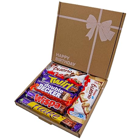 Thông tin sản phẩm Happy Birthday Chocolate Gift Box Hamper, Celebration Box For Him and Her, Birthday Treats For Children, Full Sized Bars, Letterbox Friendly, 18th, 21st, 25th, 30th