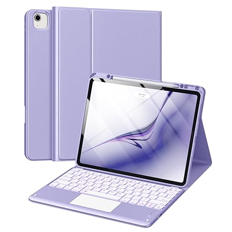 Harvopu for iPad Air 13 Inch & Pro 12.9 Case with Keyboard - Multi-Touch Trackpad, 7 Colors Backlit, Detachable Folio Keyboard Cover for iPad Pro 12.9 (6th, 5th, 4th, 3rd gen), Air 13 M3/M2 (Purple)