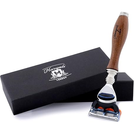 Haryali London 5 Blade Shaving Razor – Wooden Handle Cartridge Razor for Men – Wet Shave Accessories for Smooth Shave