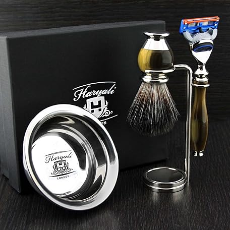 Haryali London 5 Edge Shaving Razor With Black Badger Hair Brush, Stand and Bowl Perfect Shaving Kit For Mens