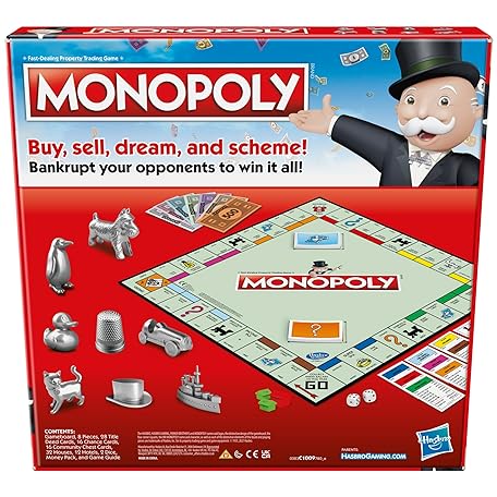 Thông tin sản phẩm Hasbro Gaming Monopoly, Strategy Board Game for 8+ Year Old Kids, 2-6 Players, Family Games for Children and Adults