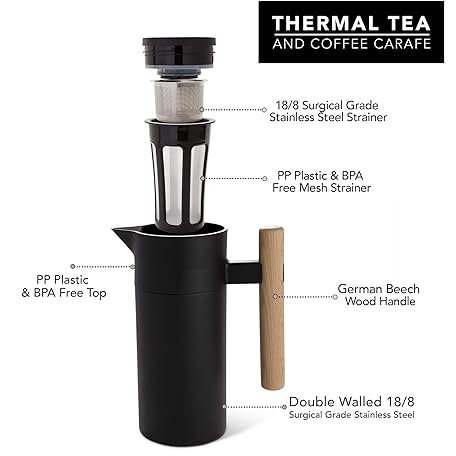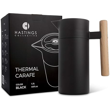 Thông tin sản phẩm Hastings Collective Thermal Coffee Carafe 1 Litre - Stainless Steel Double Walled Vacuum Insulated Carafe - Thermal Coffee Pot Thermos, Travel Size Beverage Dispenser with Tea Infuser (Black)