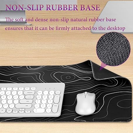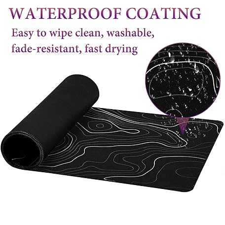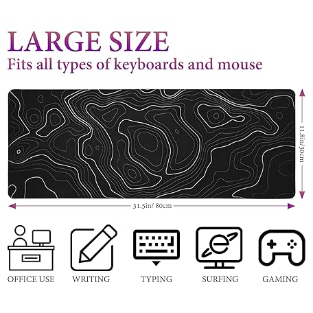 Thông tin sản phẩm HAUTOCO Topographic Contour Large Gaming Mouse Pad, 800 x 300 x 3MM Big Mousepad Desk Pad with Non-Slip Base and Stitched Edge, Minimalist Computer Keyboard Mouse Mat for Office Work, Black, HT155MP