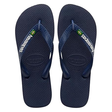 Havaianas Brasil Logo, Iconic, Comfortable and Durable Flip-Flops, Straps with Brazilian Flag and Non-Slip Sole with Colourful Stripes, Adults Unisex, Navy Blue, 4.5/5