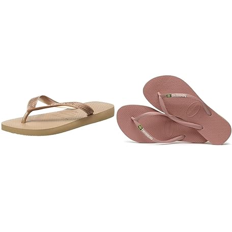 Havaianas Women's, Top Tiras, Flip Flop, Rose Gold, 6/7 UK Slim Brasil Logo Women Flip Flops | Color: Black | Size: 6/7 UK