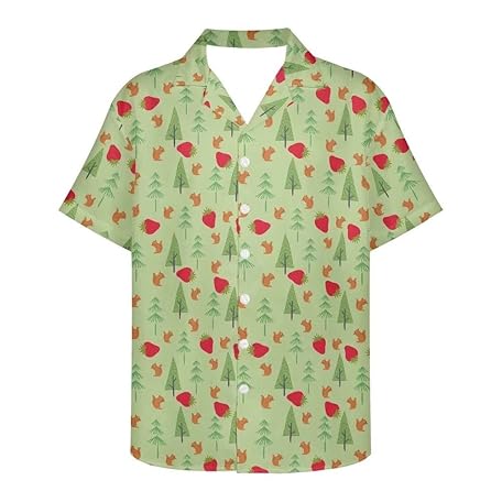 Hawaiian Shirts for Men Short Sleeve Regular Fit Graphic Classic Summer Shirts, Brown Squirrel Red Stawberry Green Tree, Large