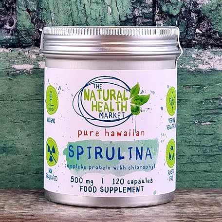 Sản phẩm Hawaiian Spirulina Capsules 500mg by The Natural Health Market - 100% Pure - No Additives - Plastic Free Packaging - Made in England - Vegan-Friendly Supplement (120 Capsule - TIN) đang được bán với giá ưu đãi là $25.8003 tại nước Anh.