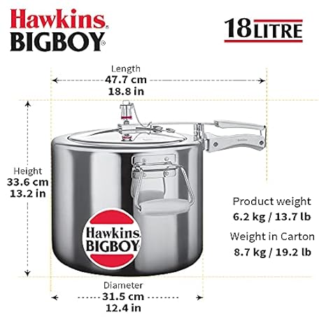 Thương hiệu HAWKINS là cái tên nổi tiếng được rất nhiều khách hàng trên thế giới chọn lựa. Với kiểu dáng đẹp mắt, sang trọng, sản phẩm Hawkings Bigboy Aluminium Pressure Cooker là sự lựa chọn hoàn hảo nếu bạn đang tìm mua một món cho riêng mình.