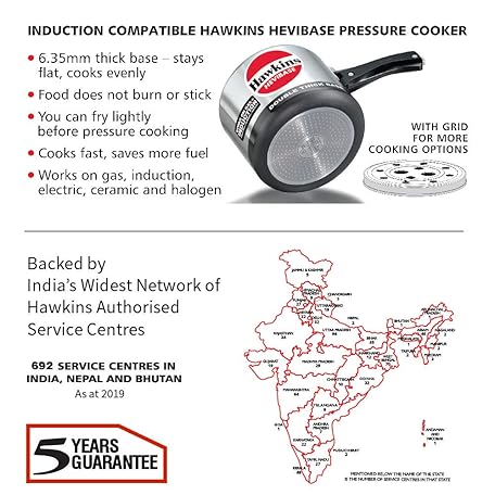 Thông tin sản phẩm Hawkins 3 Litre Hevibase Pressure Cooker, Induction Inner Lid Cooker, Silver (IH30)