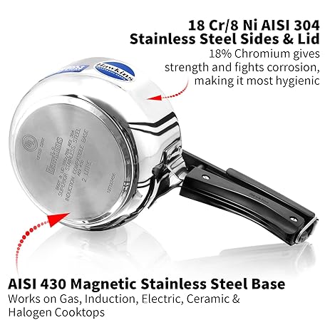 Thông tin sản phẩm HAWKINS Stainless Steel Induction Compatible Pressure Cooker, 2 Litre, Silver (HSS20)