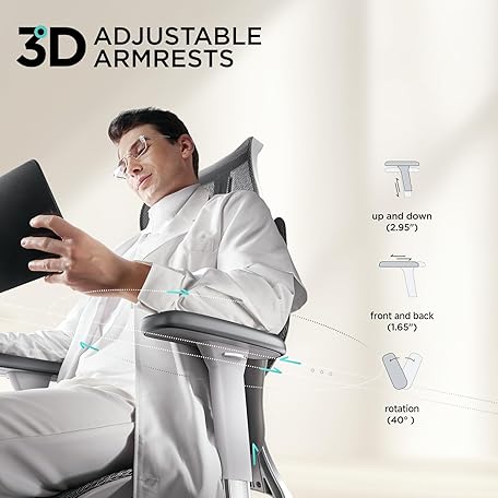 Thông tin sản phẩm Hbada E3 Air Ergonomic Office Chair with Dynamic Lumbar Support, 3D Adjustable Headrest for Home Office Chair, 3D Adjustable Armrests Desk Chair, Swivel Big and Tall Computer Chair, Gray