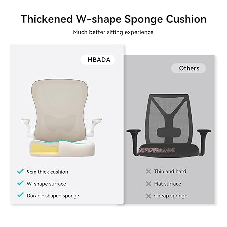 Thông tin sản phẩm Hbada Ergonomic Desk Chair, Computer Office Chair with Flip-up Armrest&Lumbar Support, Adjustable Height, Grey