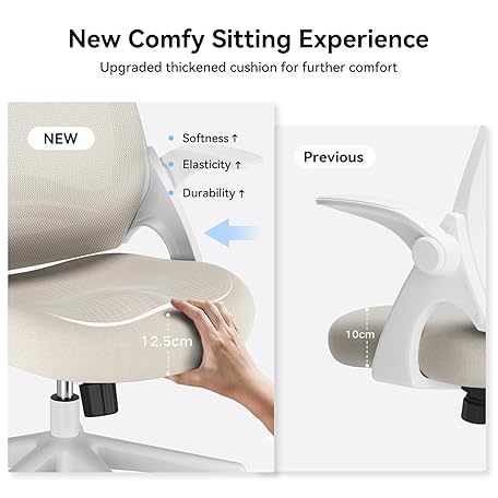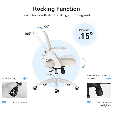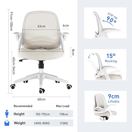 Thông tin sản phẩm Hbada Ergonomic Office Chair with Folding Armrest, Canvas Office Chair, 360° Swivel, Grey