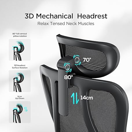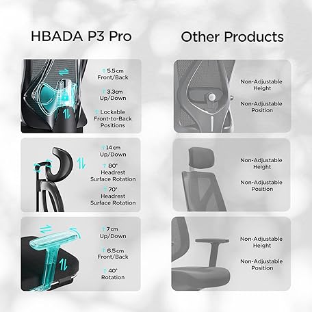 Thông tin sản phẩm Hbada P3 Pro Ergonomic Office Chair with 2D Adjustable Lumbar Support, 3D Adjustable Headrest and Armrest, 135° Stepless Tilt Function, Black (with Footrest)