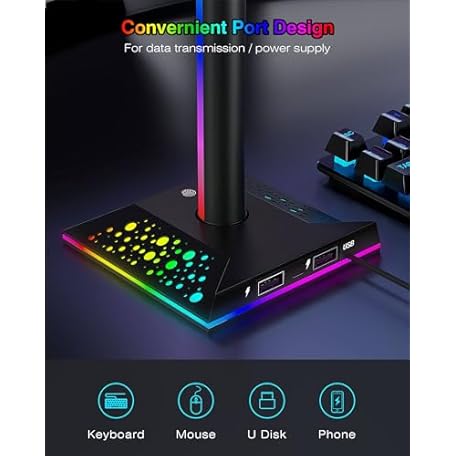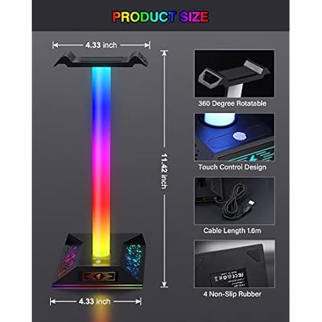 Sản phẩm Hcman Headphone Stand Gaming Headset Holder RGB PC Gaming Accessories for Desk, Cool LED Headset Stand with 2 USB Charger for Gamer đang được bán với giá ưu đãi là $39.4362 tại nước Anh.