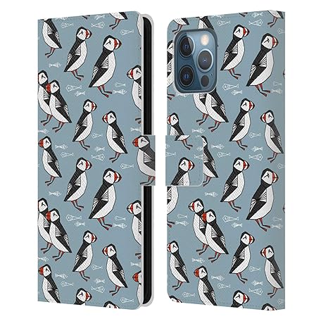 Head Case Designs Officially Licensed Andrea Lauren Design Puffins Birds Leather Wallet Case Compatible With Apple iPhone 12 Pro Max