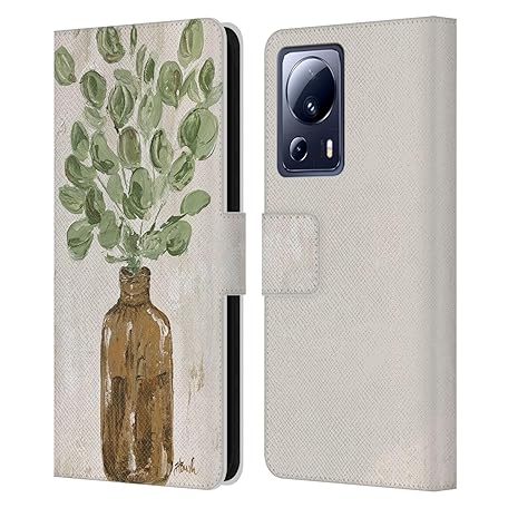Head Case Designs Officially Licensed Haley Bush Brown Bottle Eucalyptus Floral Painting Leather Book Wallet Case Cover Compatible With Xiaomi 13 Lite 5G