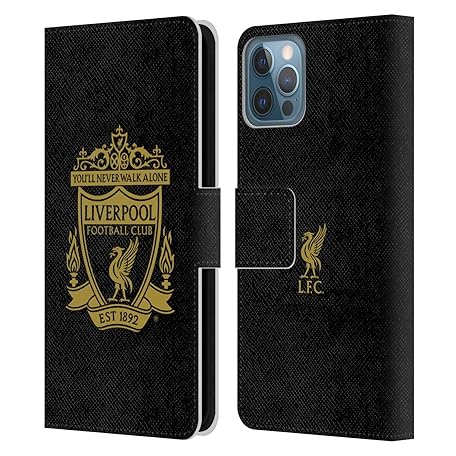 Head Case Designs Officially Licensed Liverpool Football Club Black 3 Crest 1 Leather Book Wallet Case Cover Compatible With Apple iPhone 12 / iPhone 12 Pro