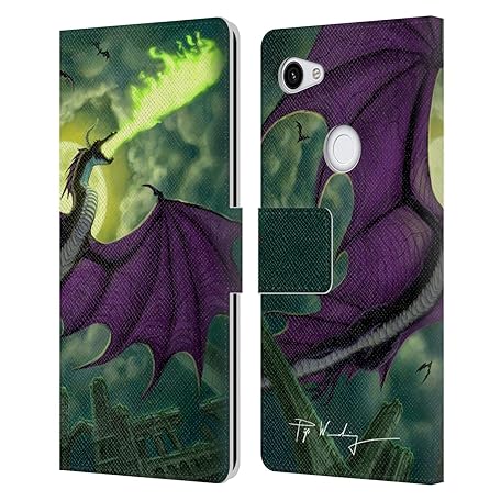 Head Case Designs Officially Licensed Piya Wannachaiwong Full Moon Black Dragons Leather Wallet Case Compatible With Google Pixel 3a XL