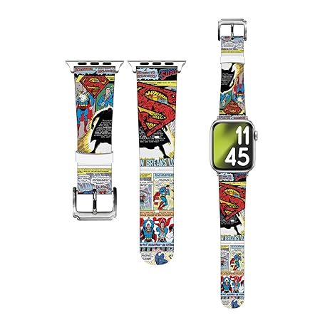 Head Case Designs Officially Licensed Superman DC Comics Oversized Logos And Character Genuine Leather Watch Strap Compatible With Apple Watch 38/40/41mm