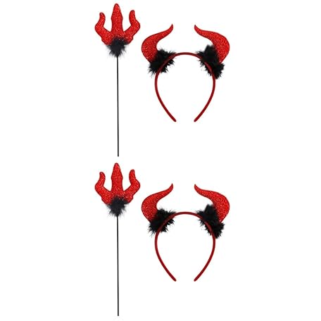 Healeved 2sets Devil Horns Halloween Cosplay Headband Tail Devil Costume Accessories Party Headband