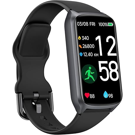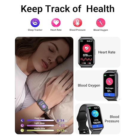 Thông tin sản phẩm Health Fitness Tracker with 24/7 Heart Rate, Blood Oxygen, Blood Pressure, Sleep Tracker, Step Counter, 5ATM Waterproof Activity Trackers and Smart Watches for Women Men Kids (S & L Bands Included)