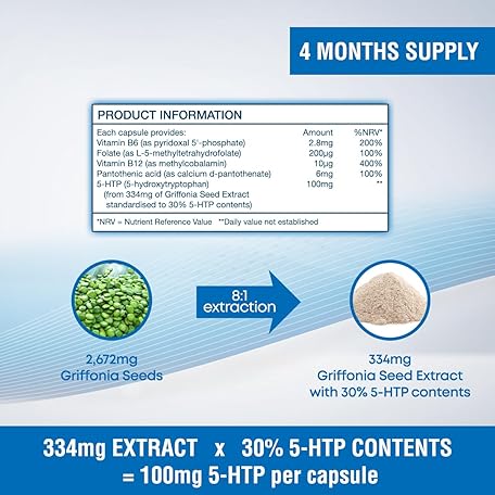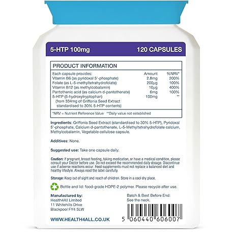 Sản phẩm Health4All 5-HTP Supplement 100mg per Capsule 4-Month Supply 120 Capsules High Strength 5 HTP from Griffonia Seed Extract with Serotonin and Melatonin Conversion Precursors for Mood and Sleep Support đang được bán với giá ưu đãi là $24.8084 tại nước Anh.