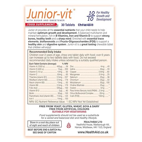 Thương hiệu HealthAid là cái tên nổi tiếng được rất nhiều khách hàng trên thế giới chọn lựa. Với kiểu dáng đẹp mắt, sang trọng, sản phẩm HealthAid Junior-VIT Chewable Multivitamins Pack of 2 x 30 Vegetarian Tablets (60 Tablets) là sự lựa chọn hoàn hảo nếu bạn đang tìm mua một món cho riêng mình.