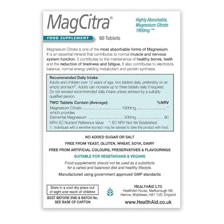 Sản phẩm HealthAid Magcitra 60 Tablets đang được bán với giá ưu đãi là $11.9573 tại nước Anh.