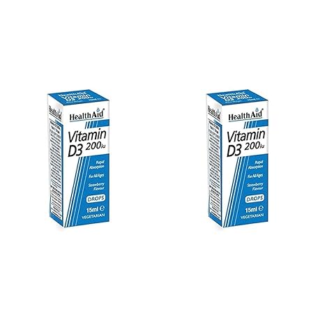 HealthAid Vitamin D3 200iu Drops, Strawberry, 15 Millilitre (Pack of 2)