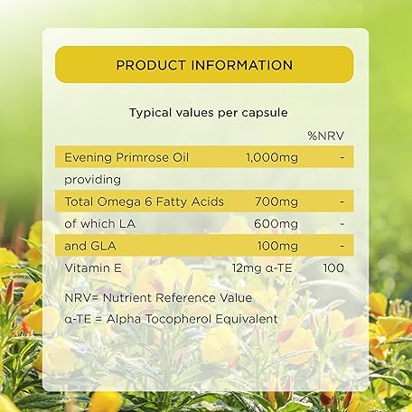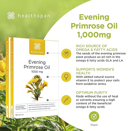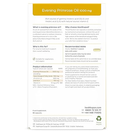 Thông tin sản phẩm healthspan Evening Primrose Oil | Support Women's Health | Helps Maintain Hormonal Balance | Rich Source of Omega 6 Fatty Acids | Added Vitamin E | Vegan (180 Capsules, 1,000mg)