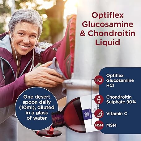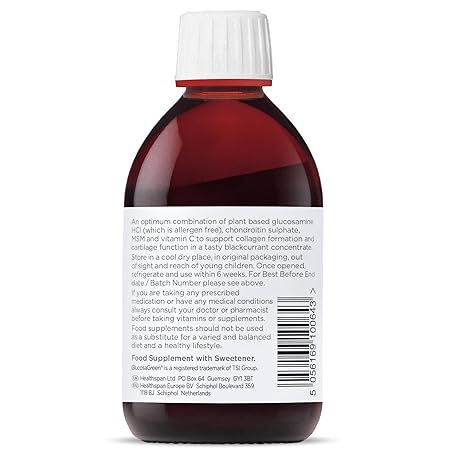Thông tin sản phẩm Healthspan Optiflex Glucosamine & Chondroitin Liquid (2x300ml) | Cartilage Health & Collagen Formation | 1,000mg Optiflex Glucosamine HCl Per Serving | Blackcurrant Flavour | Shellfish & Gelatin Free