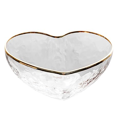 Heart Shaped Glass Bowl Gold Rim Medium Glass Breakfast Fruit Salad Bowl Hammered Texture Tableware