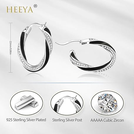 Sản phẩm HEEYA Silver-Plated Hoop Earrings for Women & Girls – Hypoallergenic Twist Sleeper Huggie Earrings with Cubic Zirconia | Women's Jewellery Gift (Gold/Rose Gold/Blue/Black/Red) đang được bán với giá ưu đãi là $19.1077 tại nước Anh.