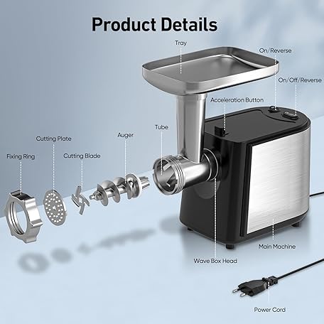 Thông tin sản phẩm Helangel Electric Meat Grinder, 2000W Meat Mincer Machine, Professional Sausage Maker & Kubbe Kit with 3 Plates, 3 Clicer, Sausage Stuffer, Electric Grinder for Home Kitchen