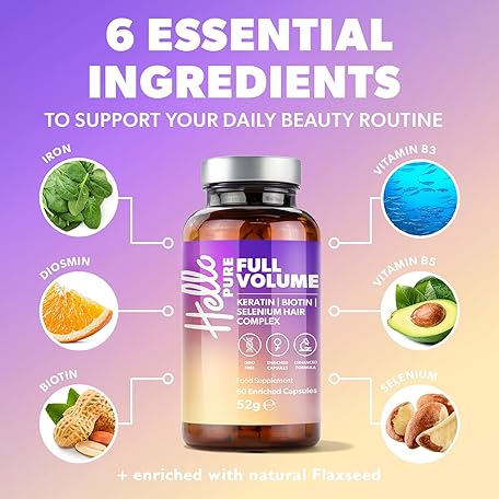 Sản phẩm Hello Pure Full Volume Hair Growth Vitamins for Women & Men – 60 Biotin (Vitamin B7) Supplement Capsules - with Keratin, Selenium & Iron, Flaxseed – Skin, Hair & Nails - GMO Free đang được bán với giá ưu đãi là $10.3005 tại nước Anh.
