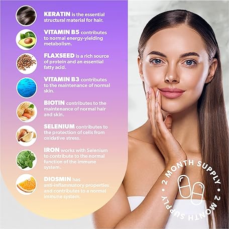 Thông tin sản phẩm Hello Pure Full Volume Hair Growth Vitamins for Women & Men – 60 Biotin (Vitamin B7) Supplement Capsules - with Keratin, Selenium & Iron, Flaxseed – Skin, Hair & Nails - GMO Free