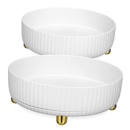 HEMOTON Rotating Cosmetic Storage Box Set, Pearl White Large and Small Desktop Makeup Organizer Trays, Skincare Case Organizer for Vanity and Bathroom, 2pcs Turntable Storage Solution