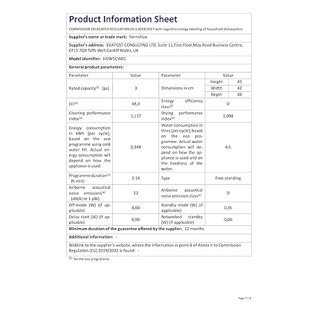 Thông tin sản phẩm Hermitlux Table Top Dishwasher 7+3 Programmes, Mini Countertop Dishwasher with 5 Place Settings, Delayed Star Function & Child Lock