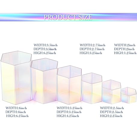 Thông tin sản phẩm Hexagonal Jewelry Display Risers Hexagonal Display Riser Stands Acrylic Hexagonal Jewelry Showcase Acrylic Jewelry Display Stand Riser for Jewelry Display, 6 Sizes (Rainbow,12 Pieces)