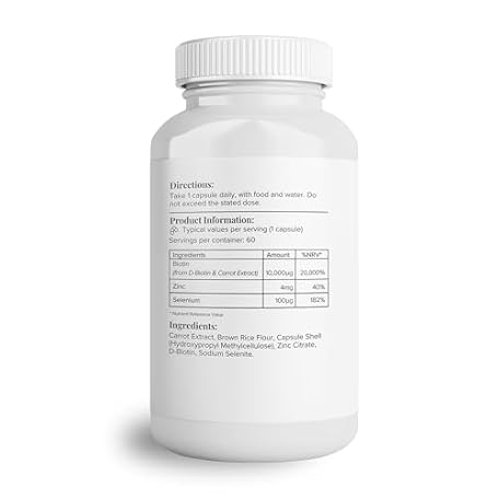 Thông tin sản phẩm Hey Nutrition Biotin Complex Supplement - Biotin, Selenium, and Zinc - Supports Hair, Nails & Skin - Promotes Immune Health - No Artificial Flavours, Non-GMO & Dairy-Free - 60 Vegan Capsules