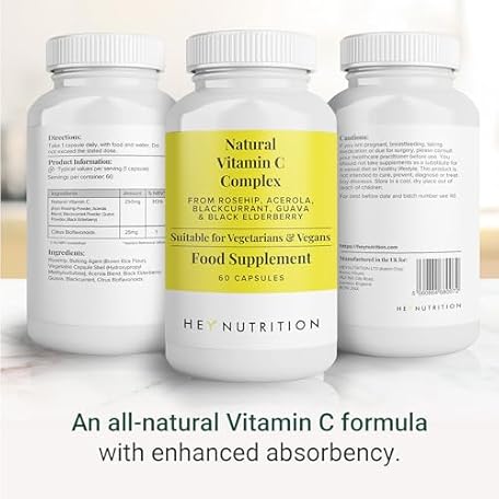 Sản phẩm Hey Nutrition Natural Vitamin C 250mg Complex from Rosehip, Acerola, Blackcurrant, Guava, and Elderberry - Immune Function, Stress, Metabolic Health, & Fatigue - Non-GMO, 60 Vegan Capsules đang được bán với giá ưu đãi là $39.24 tại nước Anh.
