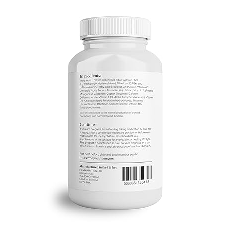 Thông tin sản phẩm Hey Nutrition Thyroid Complex Supplement - Copper, Iron, Zinc, Selenium, Vitamin B Blend - Advanced Thyroid Function - 60 Capsules/30 Servings - Non-GMO, Vegan