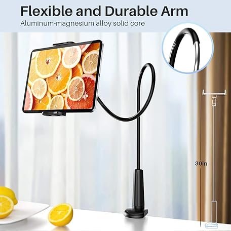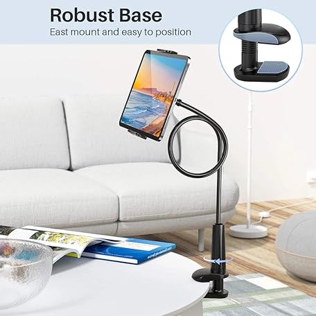HGLCM Gooseneck Tablet Holder Cell Phone Holder, Universal 360° Flexible Tablet Stand, Lazy Arm Holder Clamp Mount Bracket Bed for iPad Mini/Air, Samsung Galaxy Tab and 4.7-11" Devices(Black)