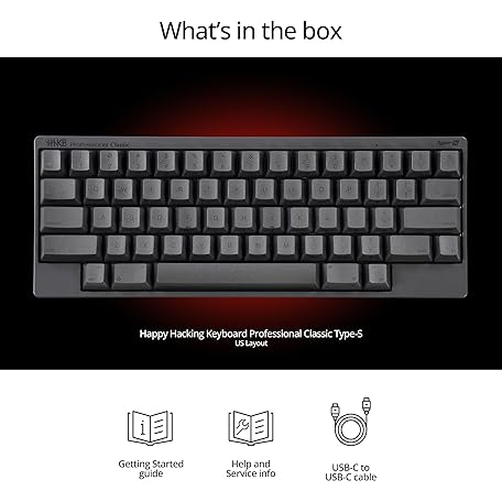 HHKB - Happy Hacking Keyboard Professional Classic Type-S Charcoal (Wired, USB-C, Silent, Mac, Windows, Charcoal, Printed) with 2-Year Advance Exchange Warranty