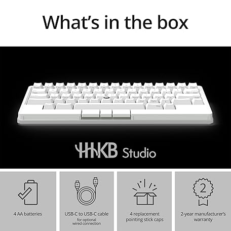 Thông tin sản phẩm HHKB - Happy Hacking Keyboard Studio (Wireless, Bluetooth, Wired, USB-C, Silent, Mac, Windows, Snow (Pure white), Printed Keycaps (SNOW/SILVER)