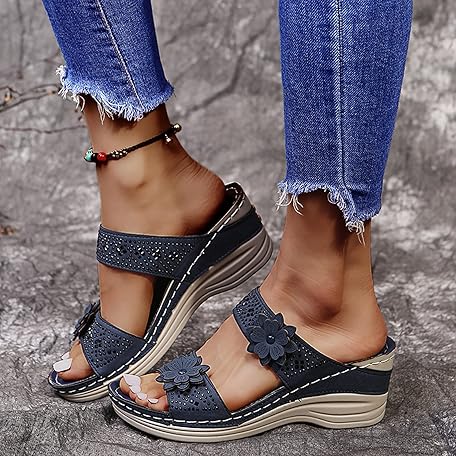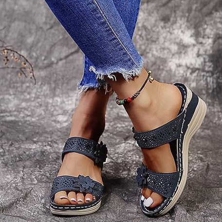 Thông tin sản phẩm HHZY Sandals for Ladies Summer Wedges Comfort Open Toe Slip on Platform Sandals Flowers Rhinestone Beach Shoes Women Casual Walking Slippers Anti Slip Mule Bohemia Sandals,Blue,US4/EU35