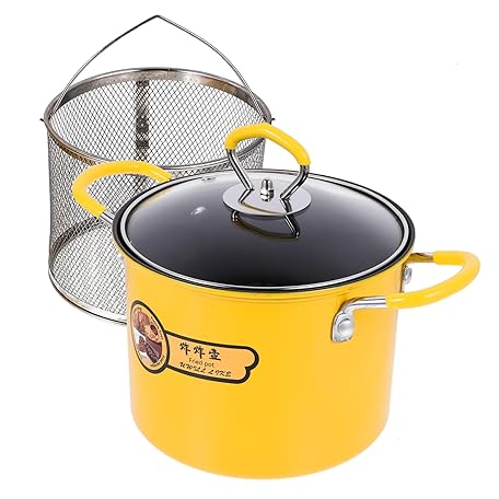 HIAKDOFT Heat-resistant Metal Fryer Pot with Removable Basket Non-stick Household Kitchen Frying Pan for Vegetables Chicken and Chips Cooking Convenient Multi-use Oil-saving Design