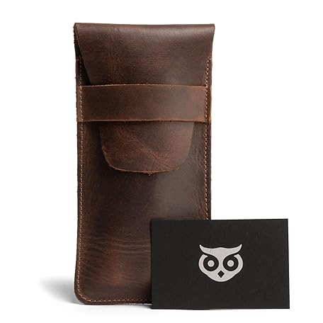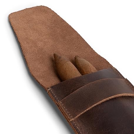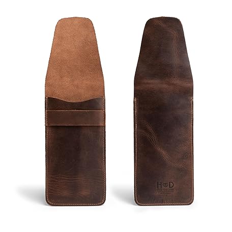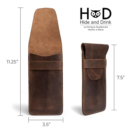 Hide & Drink, Slim Cigar Case for Three 50 Ring Cigars, Classic, All Purpose Holder, Rustic Portable Bag, Handmade, Full Grain Leather, Bourbon Brown
